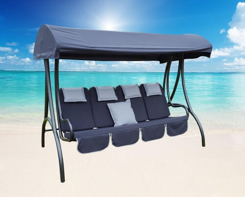 FIGYELEM! A termék szállítás szempontjából túlméretes, ezért a termékre eső szállítási költség eltér a rendszer által számítottól! A szállítási díjról kérjük eggyeztessen telefonon vagy e-mailben! Több termék vagy több darab egyidejű rendelése esetén, az egy termékre jutó szállítási díj, kedvezőbb! Az atlasz hintaágy a hinta ágyak Rolls-Royce. Külső méretek: Szélesség. :1300 mm Magasság. : 1850 mm Hosszúság. : 2450 mm Teherhordó elemeit átmérő 50 x 1.5 mm vastag csőből készítjük. Minden, amit egy hintaágytól elvárhatunk az ebben megtalálható. Az ülőfelület hegesztett vashálós kivitelű, és 2 m széles. Támlája fokozatmentesen dönthető vízszintes helyzetig, amiben fixen rögzíthető a lehető legegyszerűbb módon. A támla állítása, és rögzítése a legmodernebb lézer technikával készült alkatrészeket, és innovatív elemeket tartalmaz. Tervezésénél az első cél az volt, hogy elkészítsünk egy olyan hintaágyat, ami egyedülállóan tartós, esztétikus, nagy teherbírású, és minden helyzetben a maximális kényelmet nyújtsa. A fém felületek, cégünknek egyedileg gyártott antracit metál porfestékkel 180 fokon beégetett színterezési technikával felület kezeljük. A párnákat 7 cm vastag szivaccsal gyártjuk, majd fríz borítás után levehető egyszínű huzattal borítjuk, ami esetleges szennyeződés esetén mosható. A tetőszerkezet elkészítéséhez is felhasználtuk a leaser technológiát, ami a tető dőlésszögének állítását teszi kényelmessé, és az eddig megszokott műanyag alkatrészekkel szemben probléma mentes tartós működést garantál. A nagyméretű boltíves tető rögzítését a legnagyobb igénybevétel esetén is stabilan biztosítja. Arra is törekedtünk, hogy az összeszerelés, is a legegyszerűbben minimális kötőelem felhasználásával történjen. Igény esetén víz és UV álló tetőt is gyártunk hozzá. Doboz méretei: