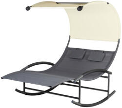 KÉNYELEM A SAJÁT KERTJÉBEN Mindenki értékeli a luxust és a kényelmet, kombinálva a friss levegőn való pihenéssel. Ez a dupla napozóágy napellenzővel a hagyományos napozóágy modern változata. Kortárs megjelenését nagy méretű, ergonomikus fekvőfelületének köszönhetően kiváló kényelem jellemzi. Ez a nyugágy kiváló kiegészítője minden kertnek, terasznak vagy otthonának medencéjének. A gyengéd hintázó mozgás együtt pihenés közben számtalan órát tölthet el rajta. A könyvolvasás, a napozás vagy egyszerűen csak a pihenés a szabadban soha többé nem lesz ugyanaz. AZ ÖN SZÁMÁRA TERVEZVE A nyugágy stabilitását és biztonságát jól kialakított vázának és futóelemeinek köszönheti, amelyek finom hintázást tesznek lehetővé. A nagy napellenző kellemes árnyékot nyújt a forró napokon és védelmet nyújt az UV sugárzás ellen, míg a kíméletes hintázás fokozza a kikapcsolódást a szabadban kedves társaságában. A nyugágy felületéhez használt kiváló minőségű szövet lélegző és vízáteresztő, így időjárásálló. A futókon elhelyezett kerekek lehetővé teszik a teljes szerkezet könnyű áthelyezését, így könnyedén megváltoztathatja a nyugágy helyzetét. MÉRETEK